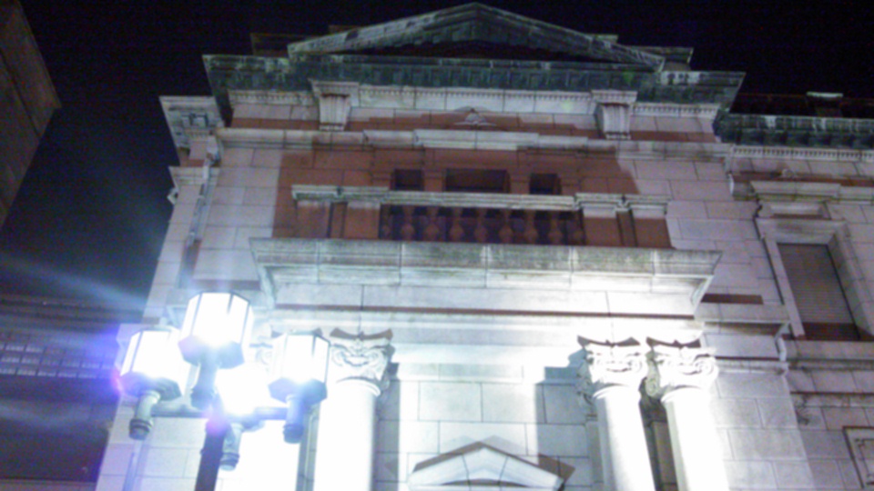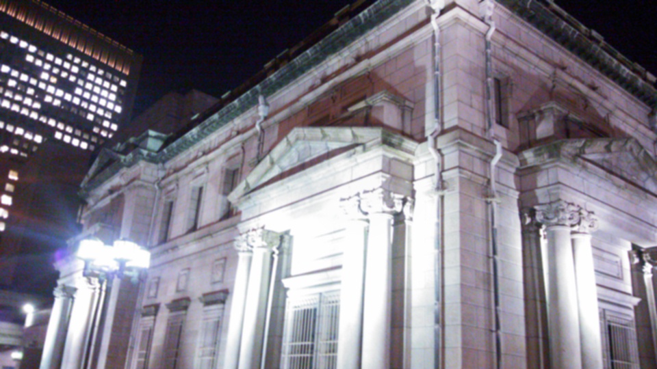 この界隈には、明治・大正時代のレトロな建物が数多く現存していますが、これもその一つです。石造りの重厚な建造物です。ベルギーの国立銀行をモデルに、1903 (明治36) 年に建設されたそうです。