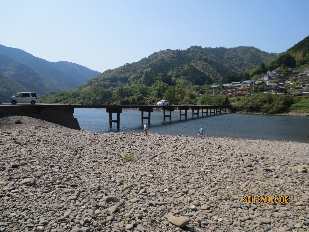 四国一周をレンタカーで旅行した時に勝間の沈下橋に行きました。四万十川には沈下橋がいくつかありますが、ここは絵になる雰囲気のある橋です。道幅も狭くて欄干もないので自動車が2台通行する時もギリギリでハラハラしてしまいます。