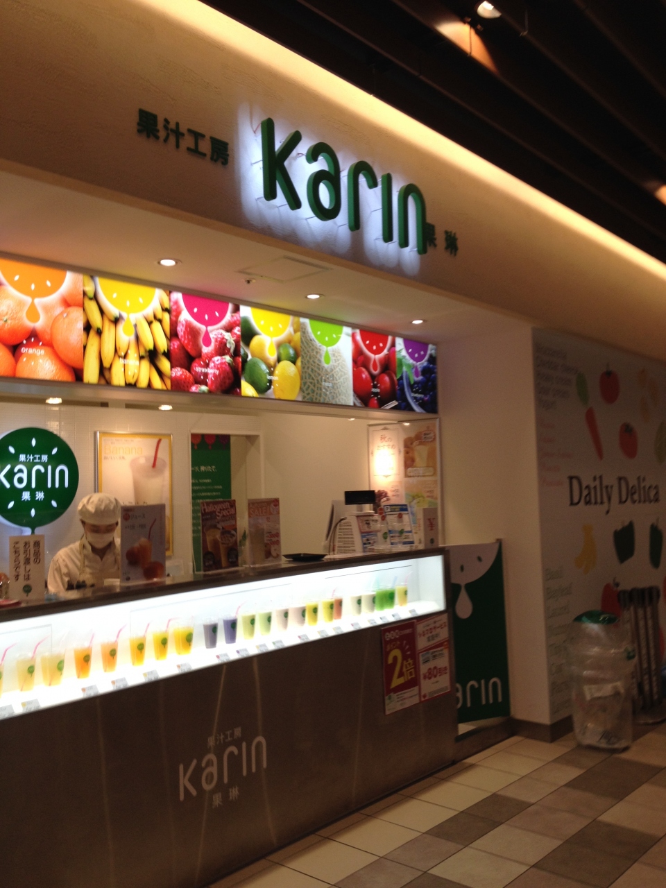 ららぽーと東京ベイ西館1階にあるジューススタンドです。生のフルーツを使用して、注文を受けてから作ってくれるので、フレッシュ感が高かったです。時期限定で季節のフルーツジュースも楽しめます。マンゴーとパインのミックスジュース「マンパ」を注文。程よい甘さで美味しかった~☆