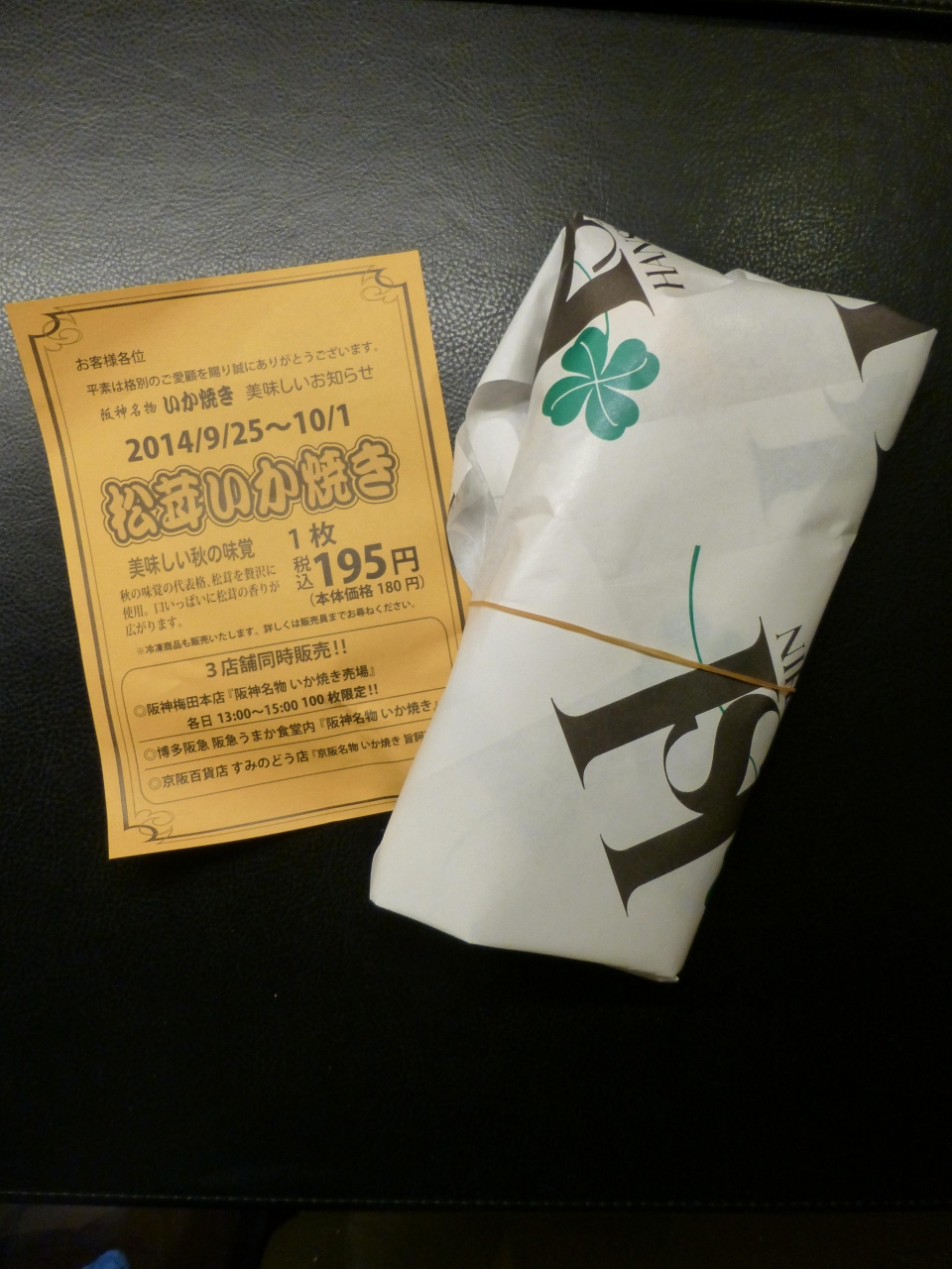 「いか焼き」というものを初めて知ったのは成田空港第1ターミナルのお店でした.今はそのお店では「いか焼き」は売っていません.いつも残念に思っていたら.大阪に来る機会があって,ここが有名ということで早速買いました.成田空港のお店では四角い形でもうちょっともっちりしていたのですが,こちらは半円形でちょっと小さめ.出もおいしかったし,こちらが本物なのでしょう.よかったです.