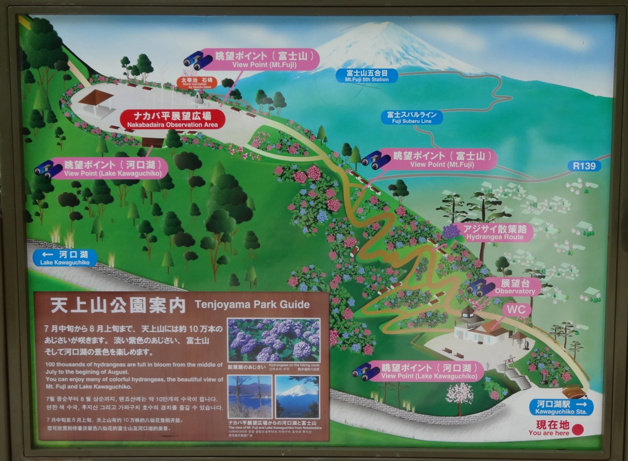 かちかち山ロープウェイで頂上まで行き帰りはハイキングで降りました。ちょうどアジサイの時期できれかったです。展望所からは富士山がきれいにみえるはずだったのですが、夏でぼやけて景観はいまいちでした・・・アジサイはきれかったです。