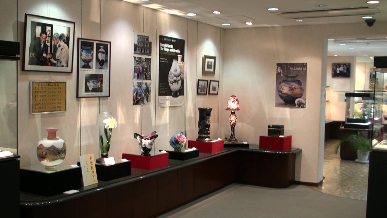 宮崎駅からは宮交バスで約40分、車で30分くらい西のほうに綾という町がある。その町の一角に伝統工芸の町で「酒泉の杜」がある。其の一角に黒木国昭氏の工房とショールームがある・そこには華麗なるガラスの世界が見られ、特に金箔を浸かったガラス工芸は見事です。値段も一流ですが作品も一流です。
