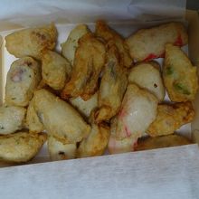 チーズ棒や小さいさつま揚げのような天ぷらがおいしい