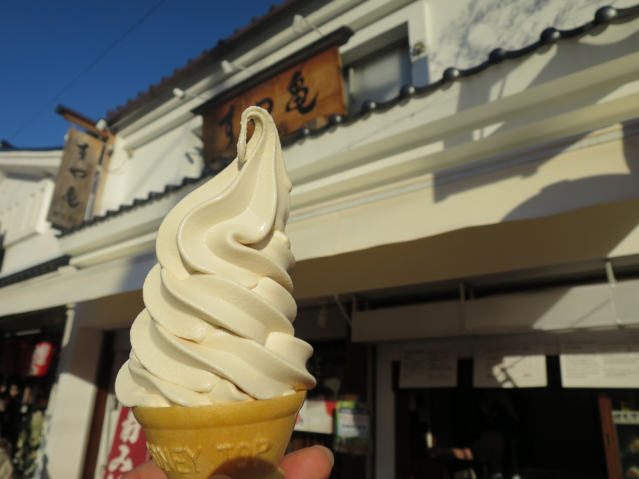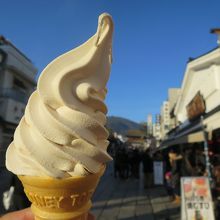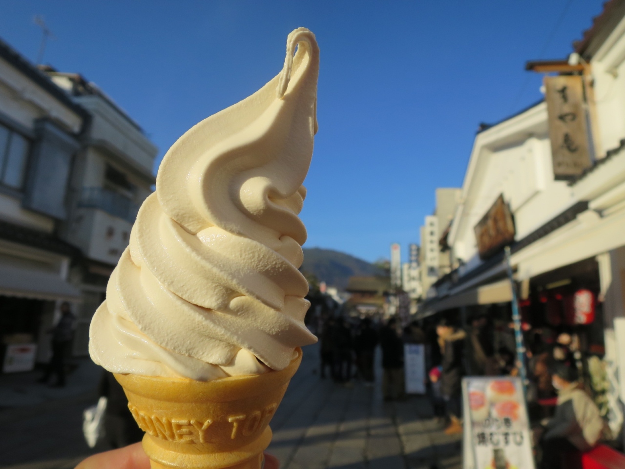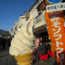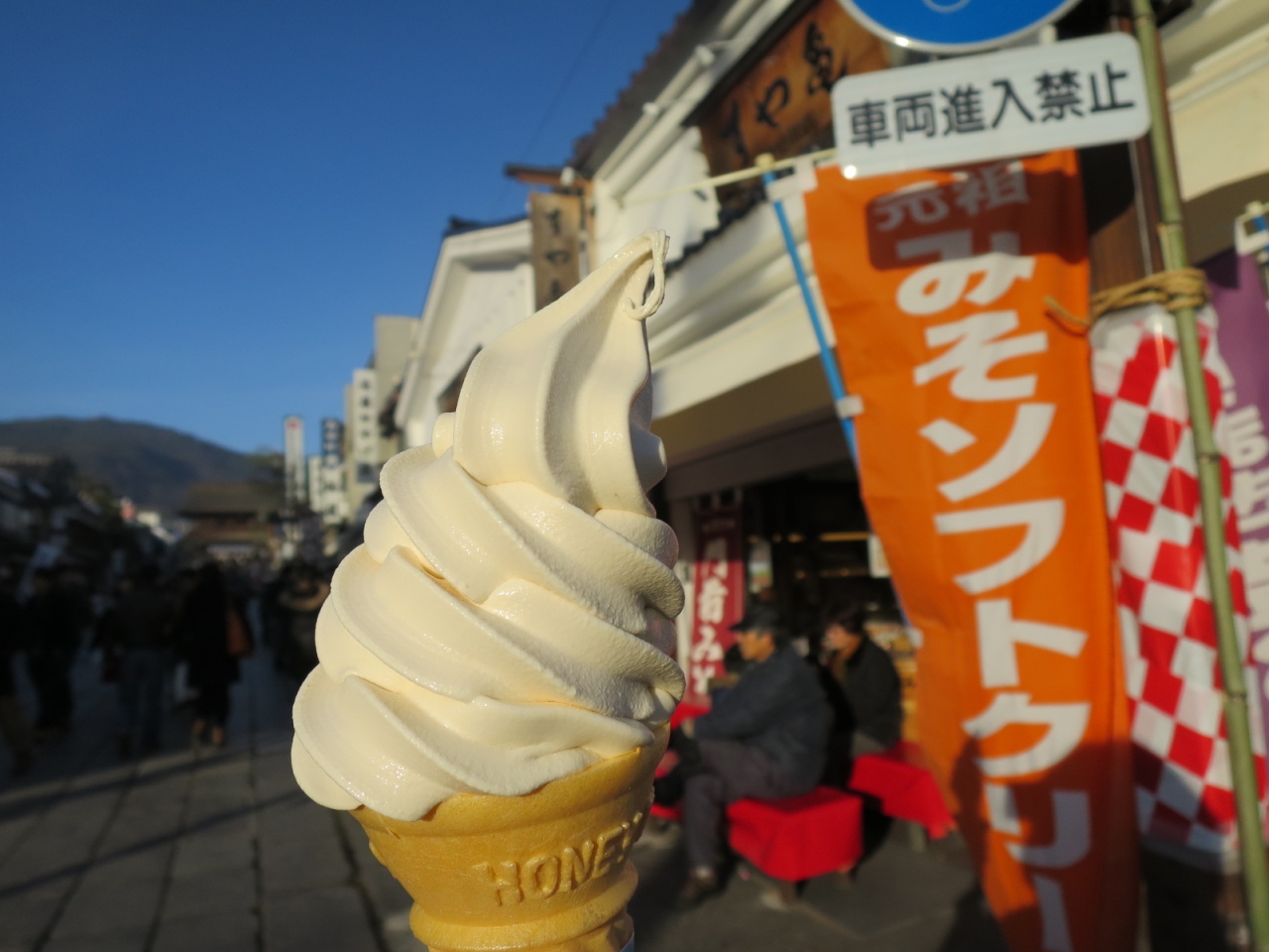 善光寺の仁王門をくぐってすぐのところにあります。みそソフトクリームの大きな幟が立っていました。お味はみそ風味の少し重たい味に感じました。少なくともすっきり甘い味ではありません。好みは人それぞれだと思います。