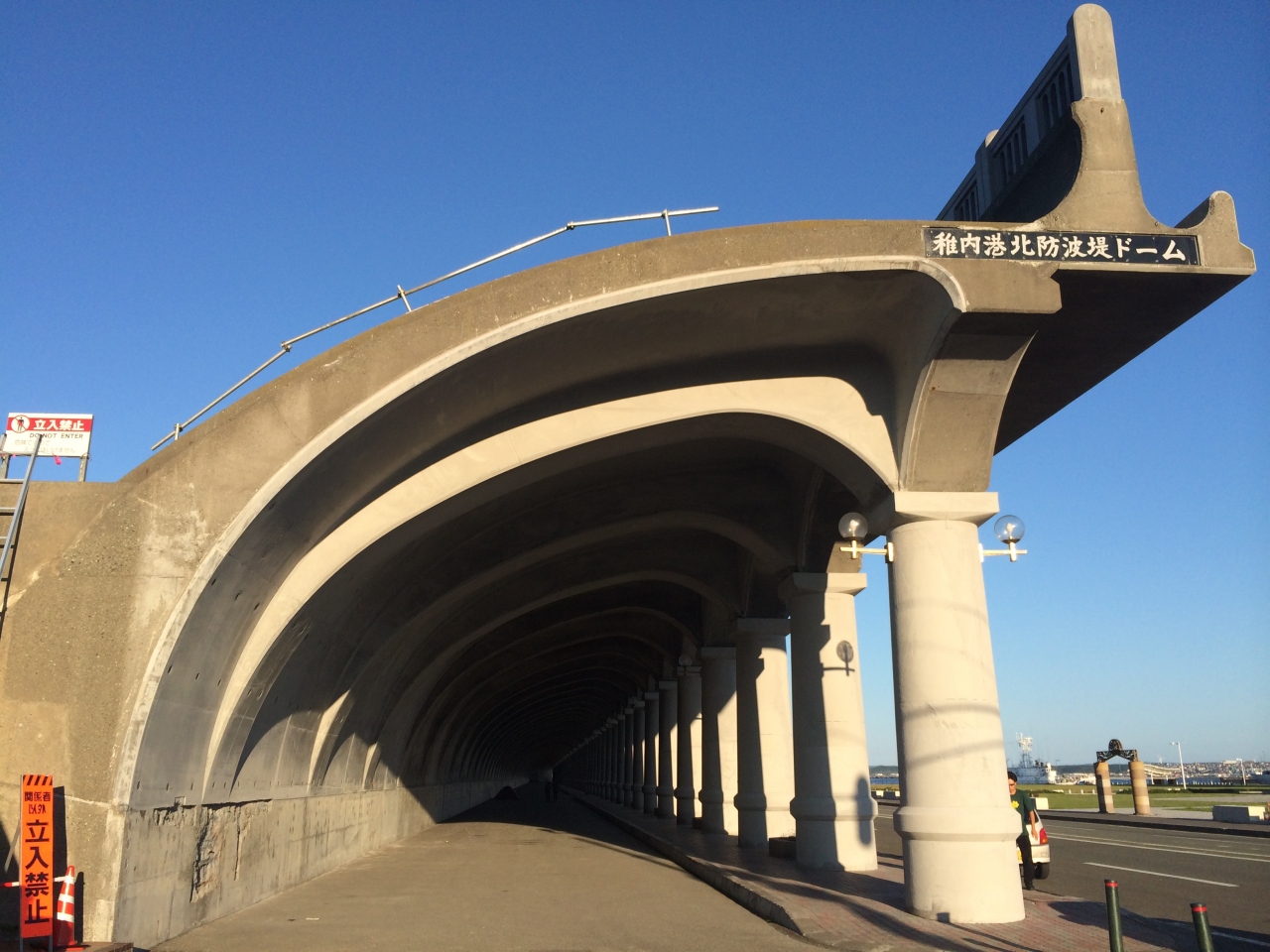 1936年頃に建設されたドーム型の防波堤です。稚内駅から徒歩圏内です。防波堤の長さは400mほどあるそうです。このドームを巨大な円い柱で支えてますので、古代ローマ建築を思わせます。人が少ないので、写真を撮るのには良いですが、ちょっとさびしい気がしました。ドームの中に店でもあれば良いのにと思いました。