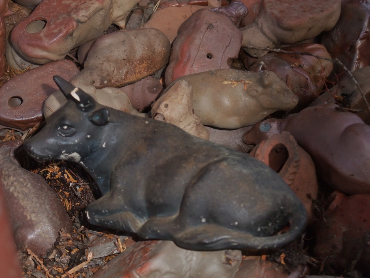 御神体の前はかわいい備前焼の牛の山ができており、積あげられた牛の数は30万体ともいわれ、ちょっとした見ものです。