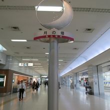 第1旅客ターミナルB1階、マーケットプレイスにある集合場所です。モノレールや京急の改札を出た先にあり、広いマーケットプレイスの中央に銀色の月のマークの付いたモニュメントがあります。羽田空港での待ち合わせにおススメの場所です。近くには、キノクニヤアントレやカフェエディアール、てんやなどがあります。