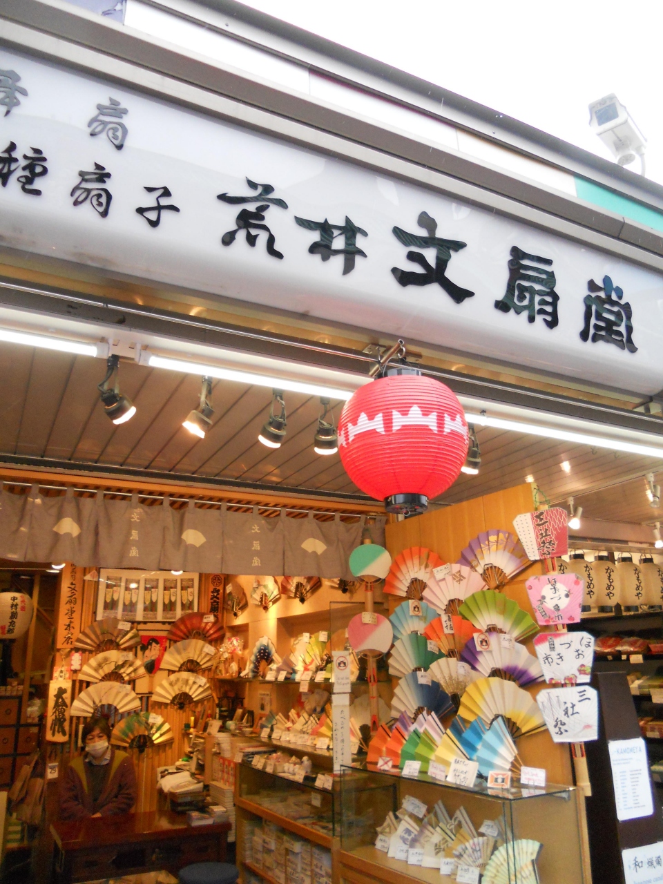 雷門から入って仲見世通りを進み、新仲見世通りを過ぎてすぐ左側にあります。日本舞踊の扇子を専門に扱っており、歌舞伎役者や落語のお得意さんも多く、オーダーメイドも扱っているそうです。外国人にとても人気があるようで、店内はにぎわっていました。