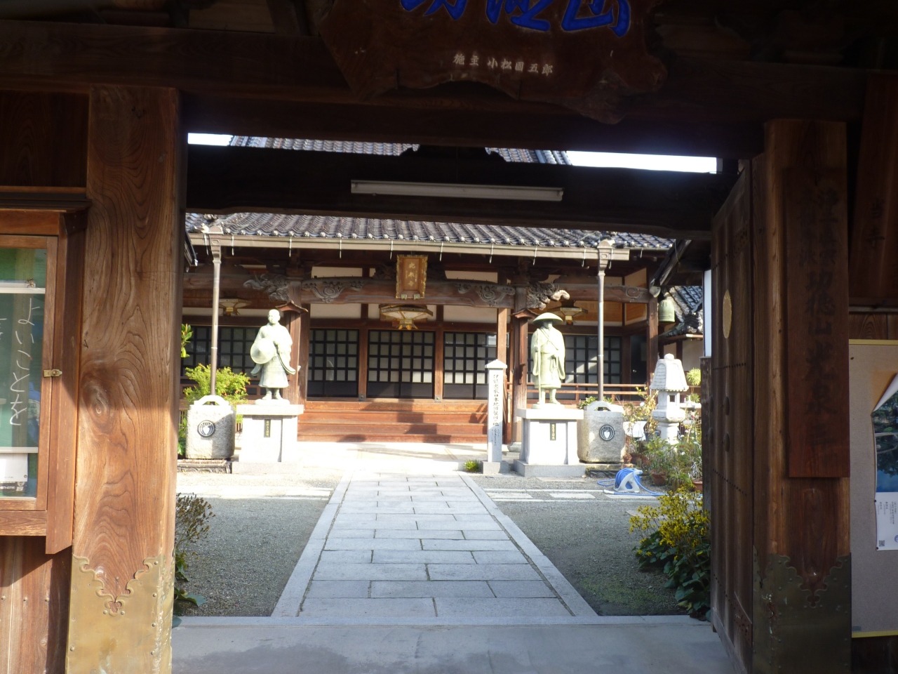 山崎町のほぼ中心で因幡街道の通り道に浄土宗西本願寺派の寺院です。文化10年11月に伊能忠敬測量隊の別働隊が測量を行いつつ、ここ光泉寺に作業上を儲け宿止めしている。寺の周りには物珍しさのため見物人が多く、作業の邪魔になるので板塀で囲いを造ったそうです。今はその標柱がたっています。