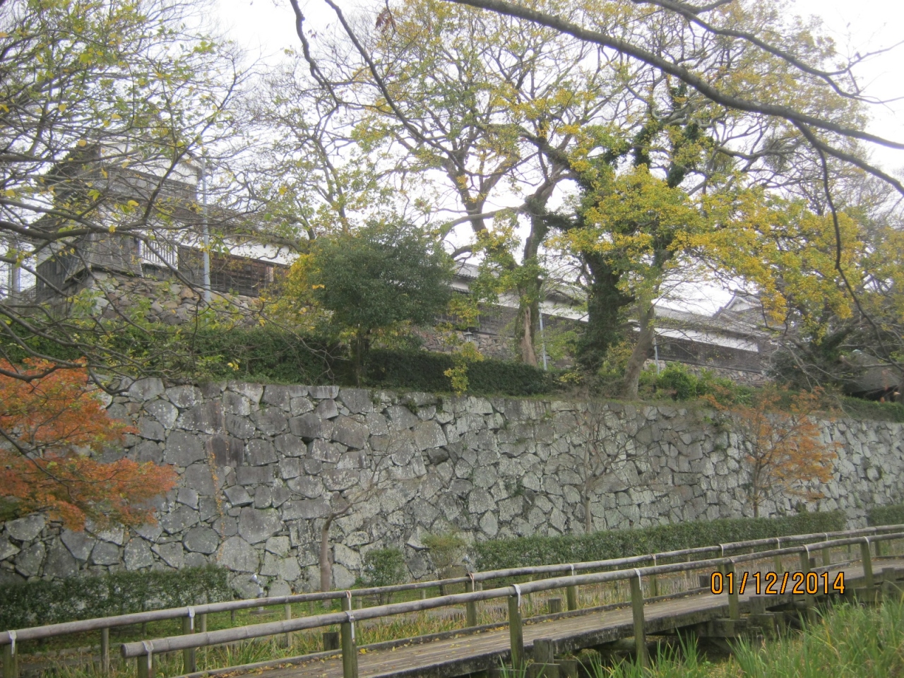 福岡城天守閣からは南西の位置にあるような気がします。南丸の敷地に残っています。木の簡素な門をくぐると2つの櫓をつなぐ長い倉庫です。城内からよりも城外の方からの景観が石垣の高さなどを意識でき防衛上でも重要な役割をしていたことがわかります。