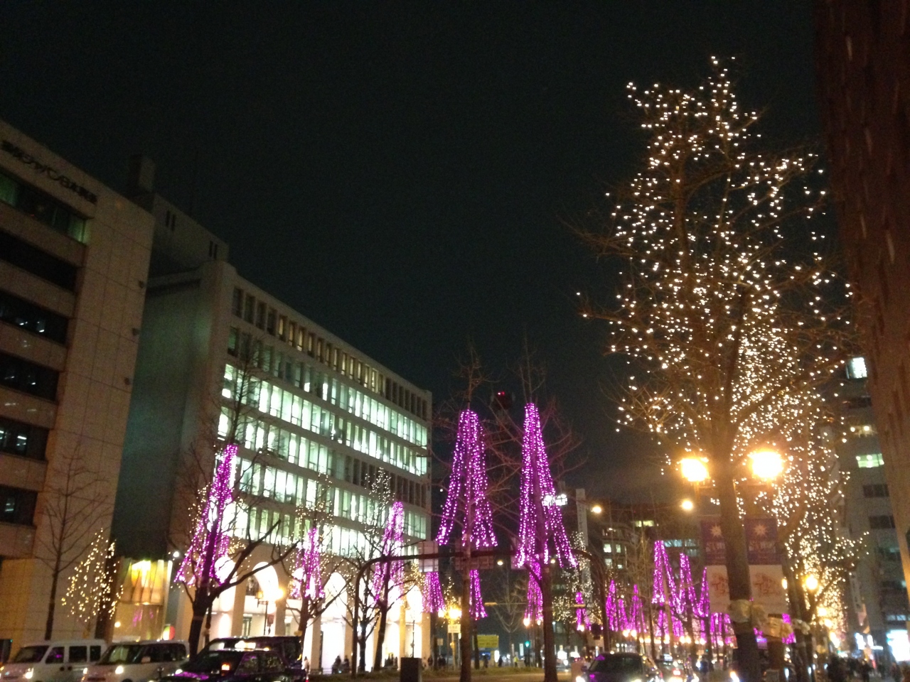 大阪の大動脈のひとつ御堂筋沿いを綺麗に彩るイルミネーションです、