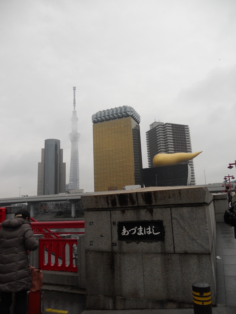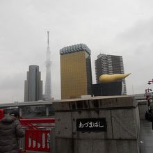 隅田川にかかる橋で、浅草駅から出てすぐ、対岸が隅田リバーサイド地区でアサヒビールの本社などもよく見えます。橋の西詰には東京都観光汽船の浅草ステーションが設けられており、隅田川ライン航路の出発地点になっています。撮影スポットとしても人気があるのか、たくさんの人でにぎわっていました。
