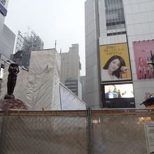 新橋駅前のシンボルとなっている「SL広場」。肝心のSLが老朽化のための補修に入っています。現在はシートが覆われていて、その姿を見ることが出来ません。