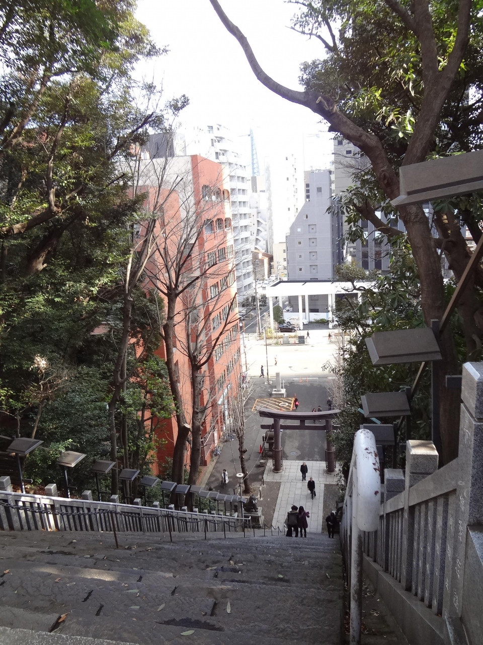 港区愛宕一丁目にある「愛宕神社」に至るにはいくつかの方法があります。急な階段を上る表参道、坂道を延々進む裏参道、更に少し離れた場所にはエレベータも設置されています。