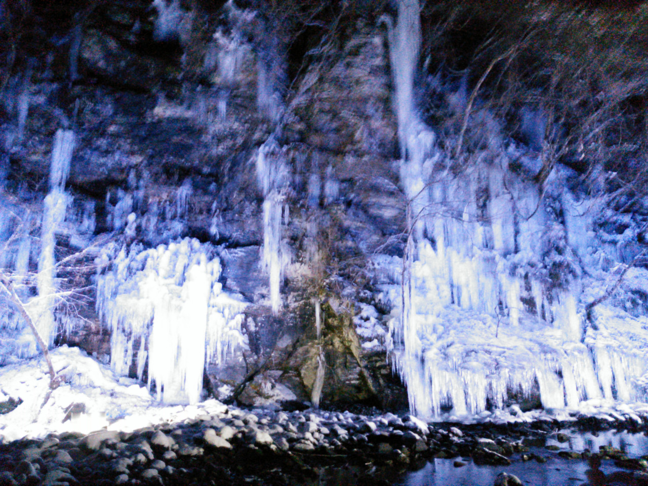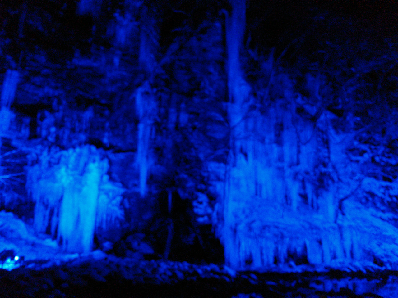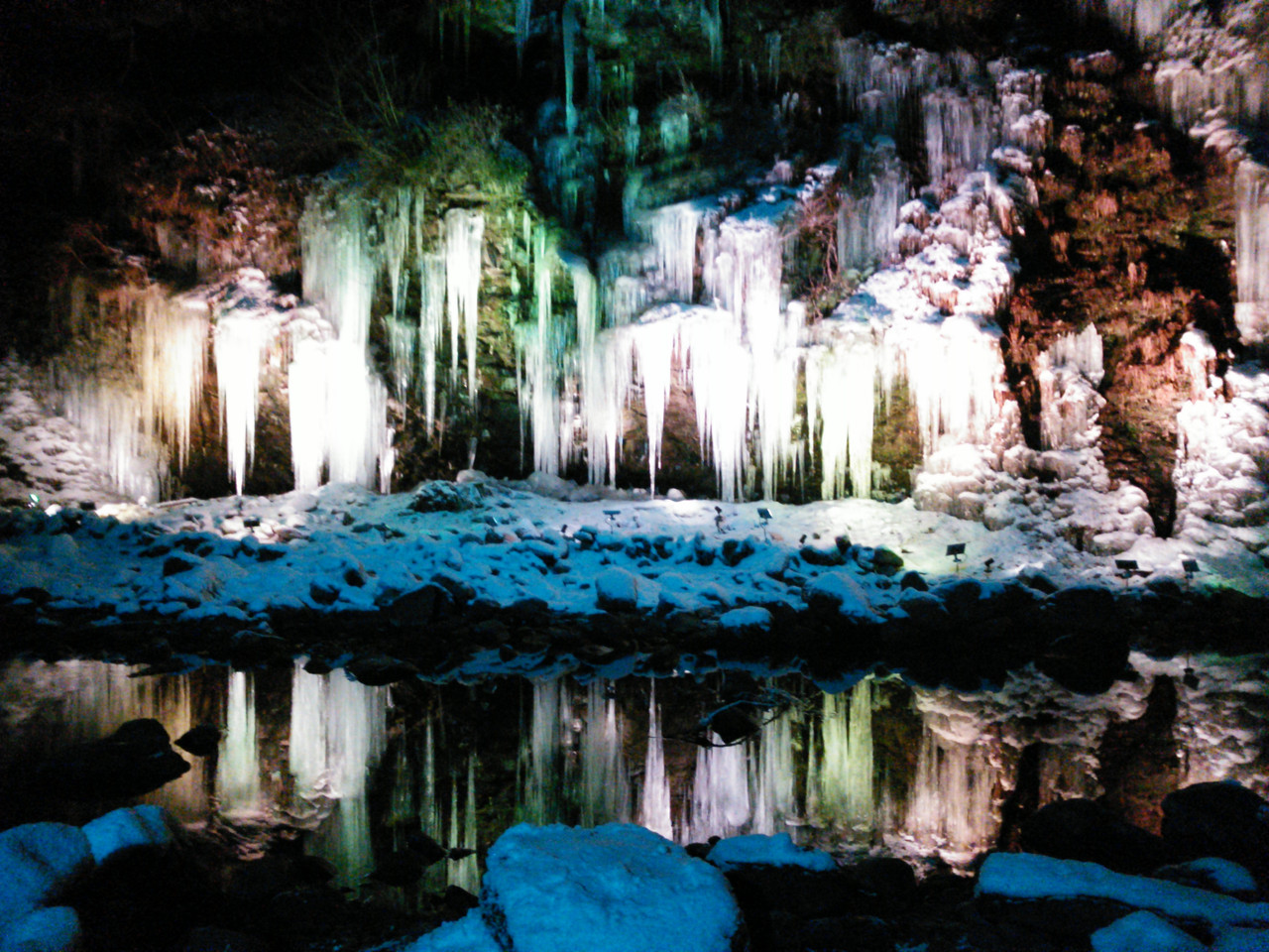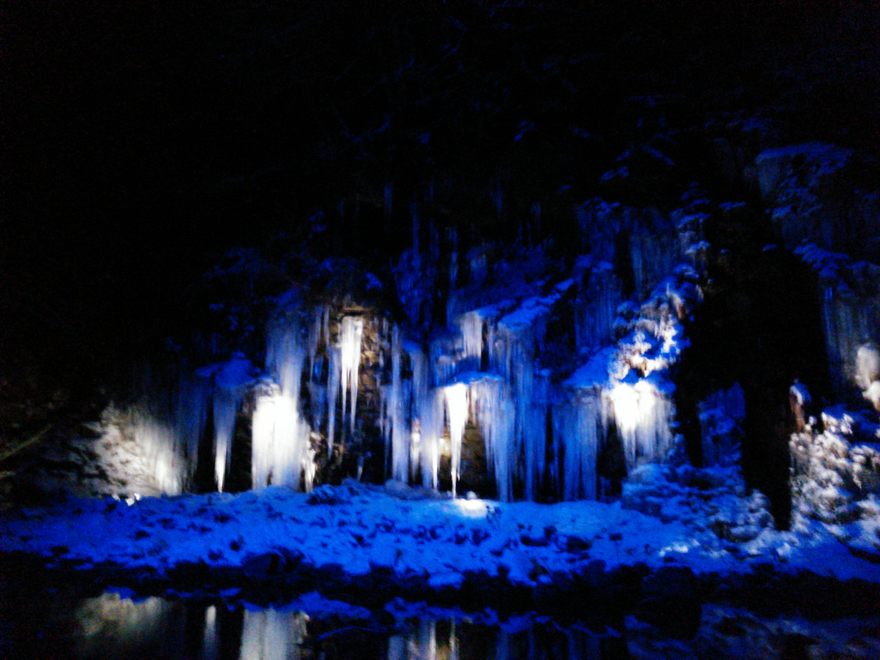 秩父三十槌の氷柱は今日(2015/1/17(土))からライトアップしています。手前が自然にできた氷柱、奥は人工的に作った氷柱だそうです。星空もキレイでした。夜は寒く、河原に雪があるので、滑りにくい靴を履いて行って下さい。