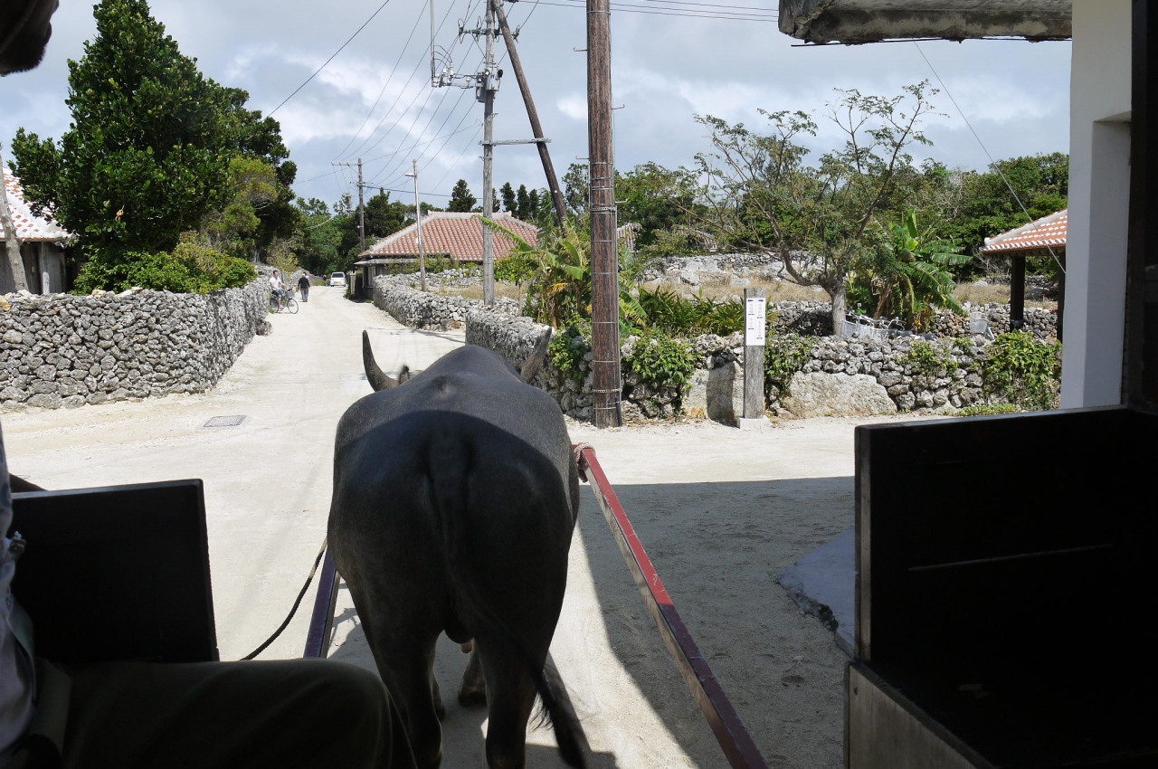 竹富島の港で水牛ツアー会社の送迎車を見つけてで連れてってもらいました。
