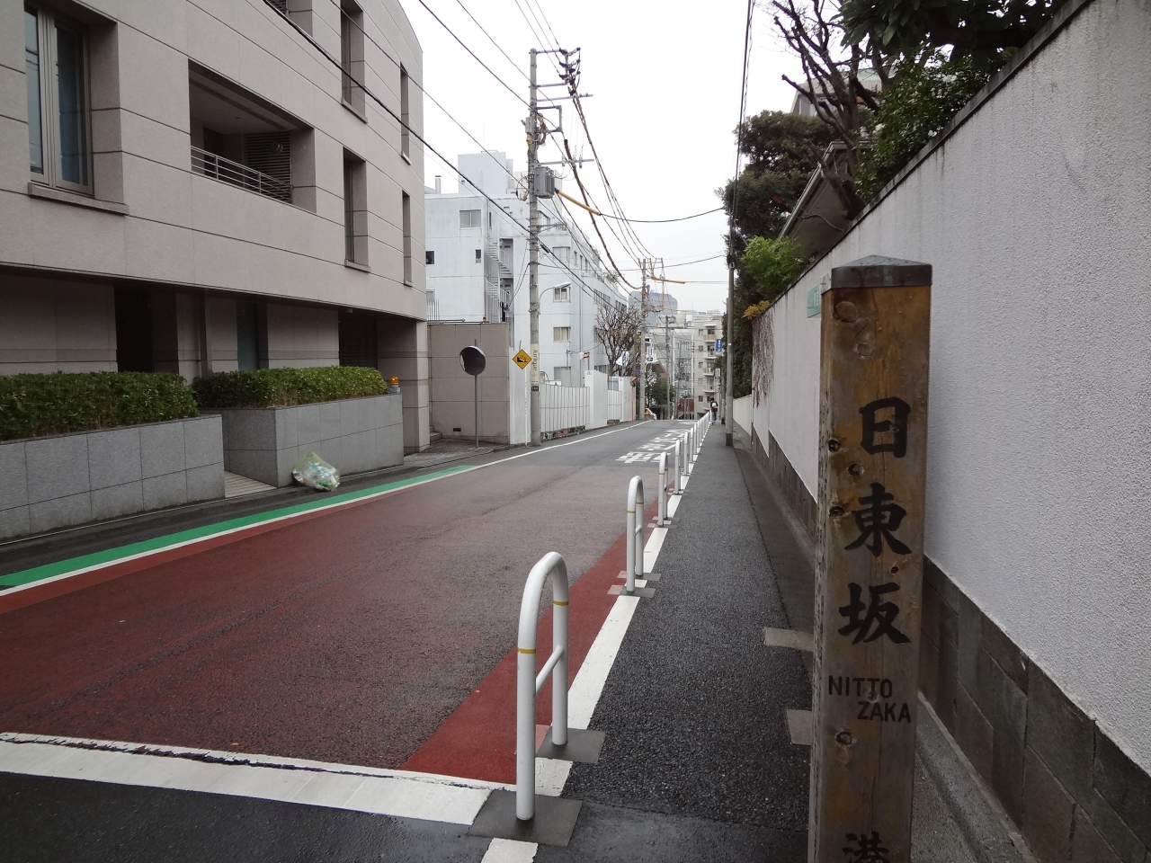テレビで「全力坂」という東京の坂を紹介するミニ番組があり、「この坂も、また走りたくなる坂」と紹介していますが、その点で行くと「日東坂」はやや面白味に欠け、あまり走りたくなりません。プラチナ通りから脇に入った裏通りになります。