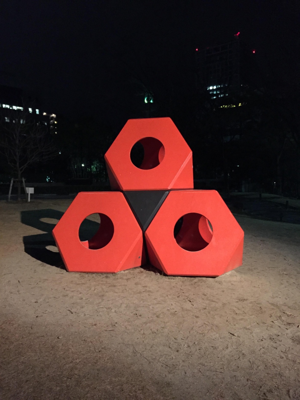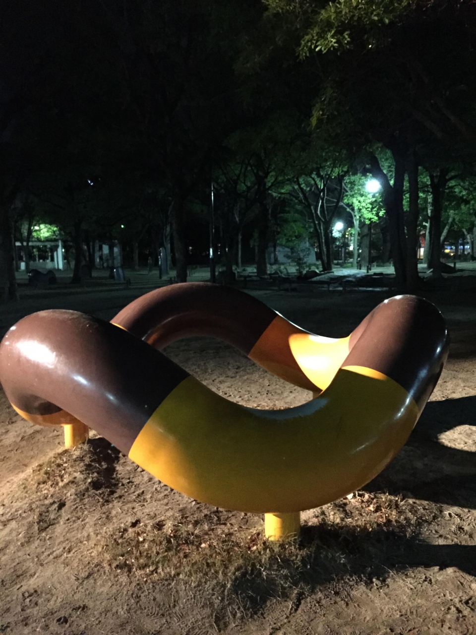 彫刻家イサムノグチ考案の遊具が3基あるのも魅力のひとつ。