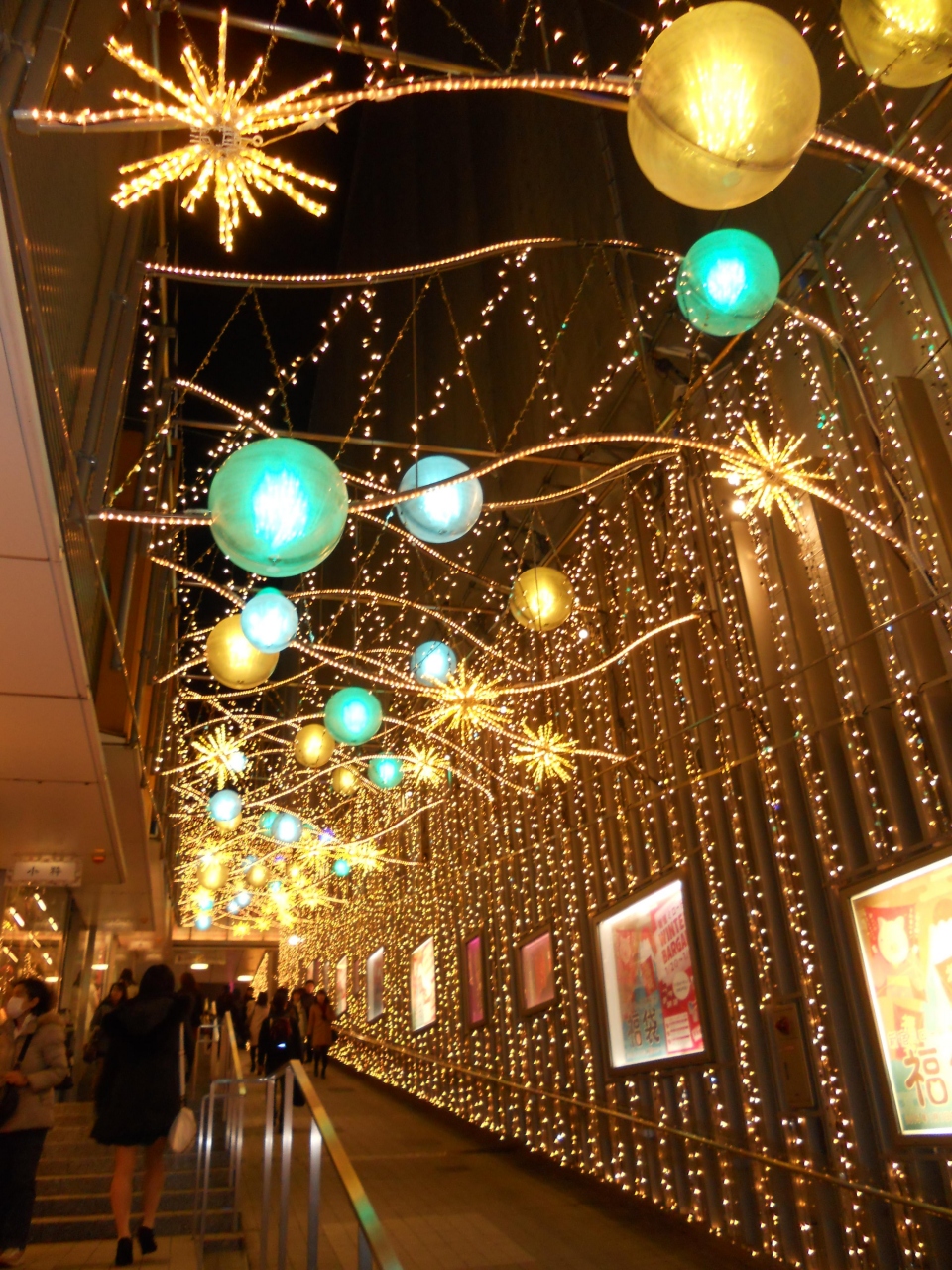 新宿駅と西口と南口をつなぐ通路で両サイドにショップなどもある通りで、これまで何度も通ったことがありますが、年末に行った際はいつもとはまったく異なり、とても華やかになっていましたので記念撮影してきました。お洒落なレストランもあるので、デートにもおすすめですね。