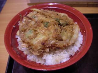 入口に券売機があり、かき揚げ丼(300円)の食券を買って、カウンターとテーブル席の間の狭い通路を進んで奥の厨房に食券を出すと、すぐにかき揚丼が出来上がりました。奥のテーブルで、七味やそばつゆをかけてテーブル席でいただきました。新宿にも店があるのでそのうち行ってみます。