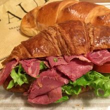 訪れた日はクロワッサンのパストラミビーフサンドとはちみつが練りこまれたロールパンを購入。