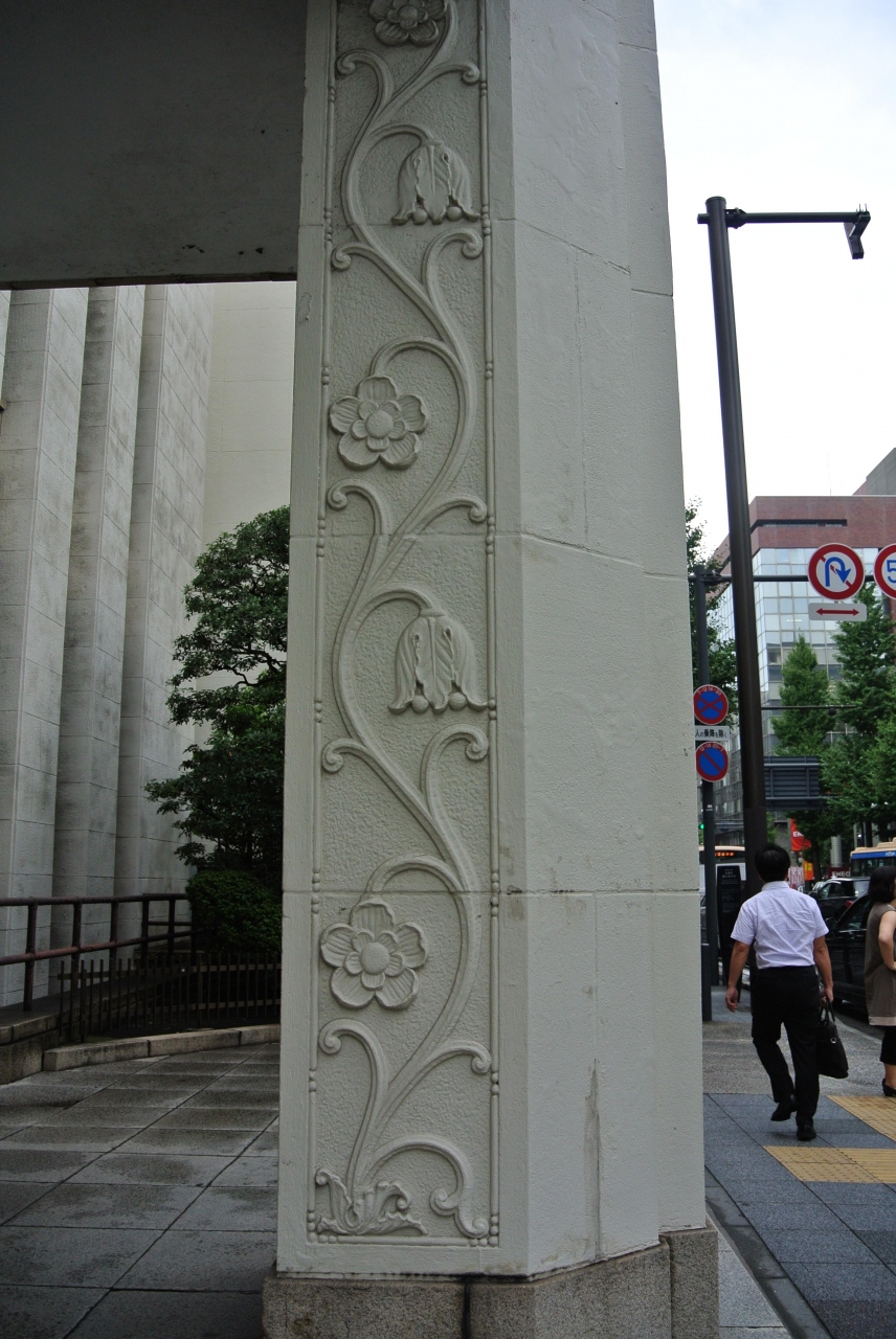1930年代のアールデコ様式の建物です。基本的には左右対称なのですが、出入り口を左にずらしているところがおもしろいです。全体的にはシンプルでシャープな印象ですが、細部を見ると細かい装飾が施されているのがわかります。特に玄関部分の柱の花のレリーフがかわいらしいです。