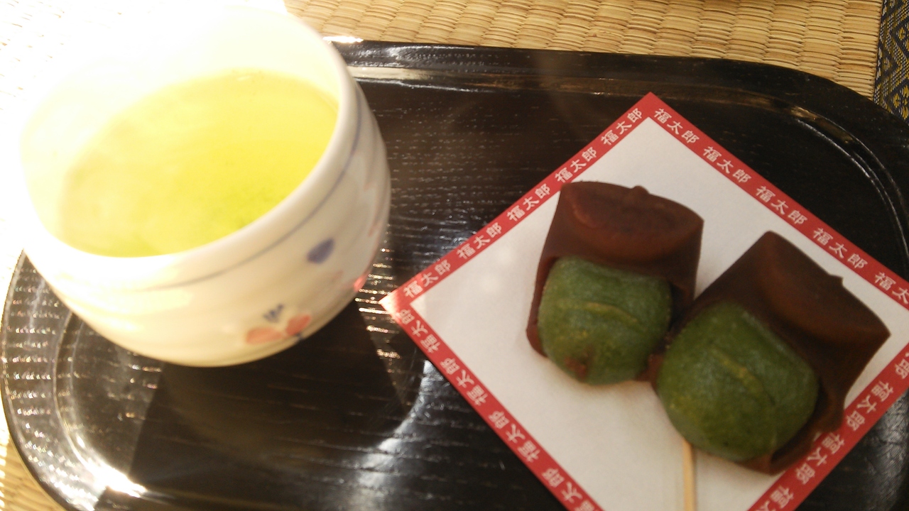 右奥には草餅の福太郎さんがあります。緑茶、草餅2個で200円でその場で食べられます。