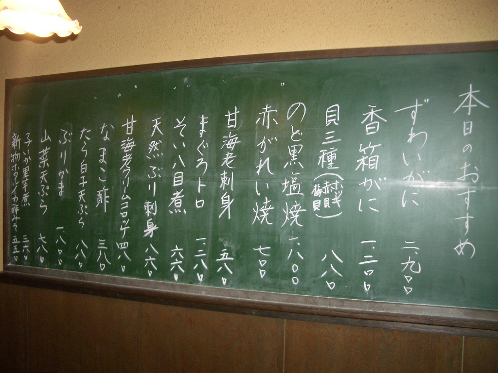 黒板には本日のおすすめが。