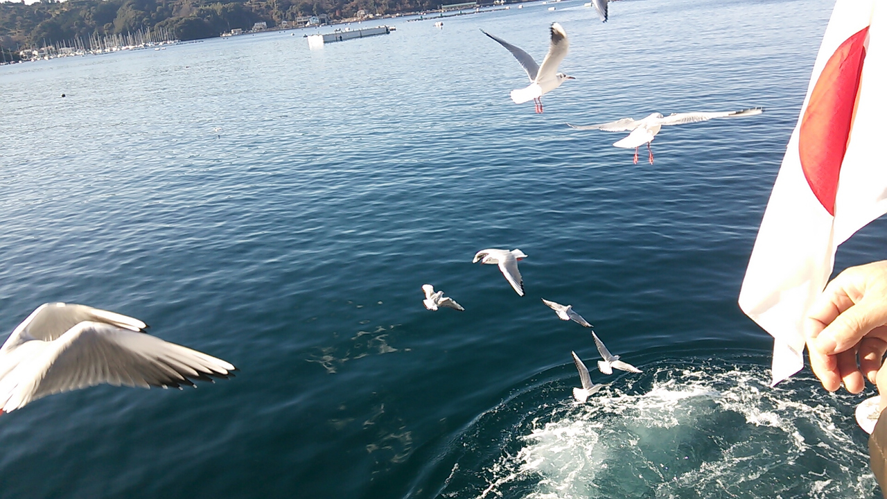富士山も見えてとても景色の良いクルージングだと思います。運航時間は20分程度なので、程よいです。お店でかっぱえびせんが売っているのでカモメにあげると、たくさん群がってきます。