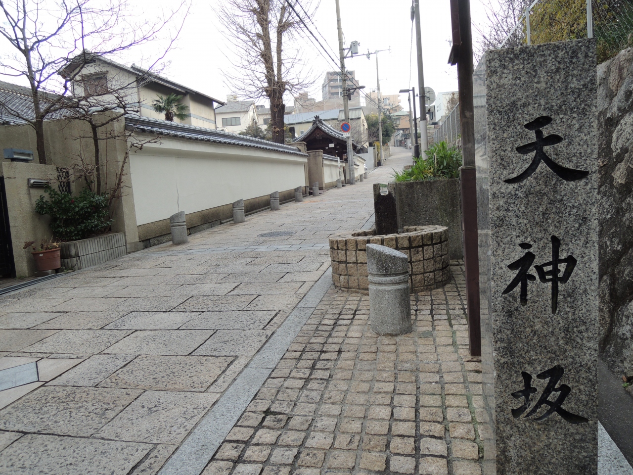 真田幸村戦死の地がある安居天神に通じる坂なのでここの坂は天神坂と呼ばれています。