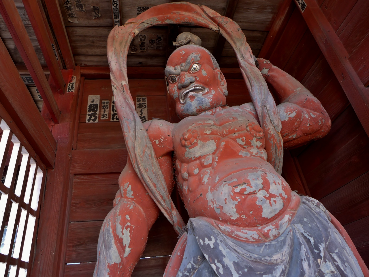 奈良時代に開かれたという古いお寺らしく、小さな山門の両脇には仁王像が立っています。