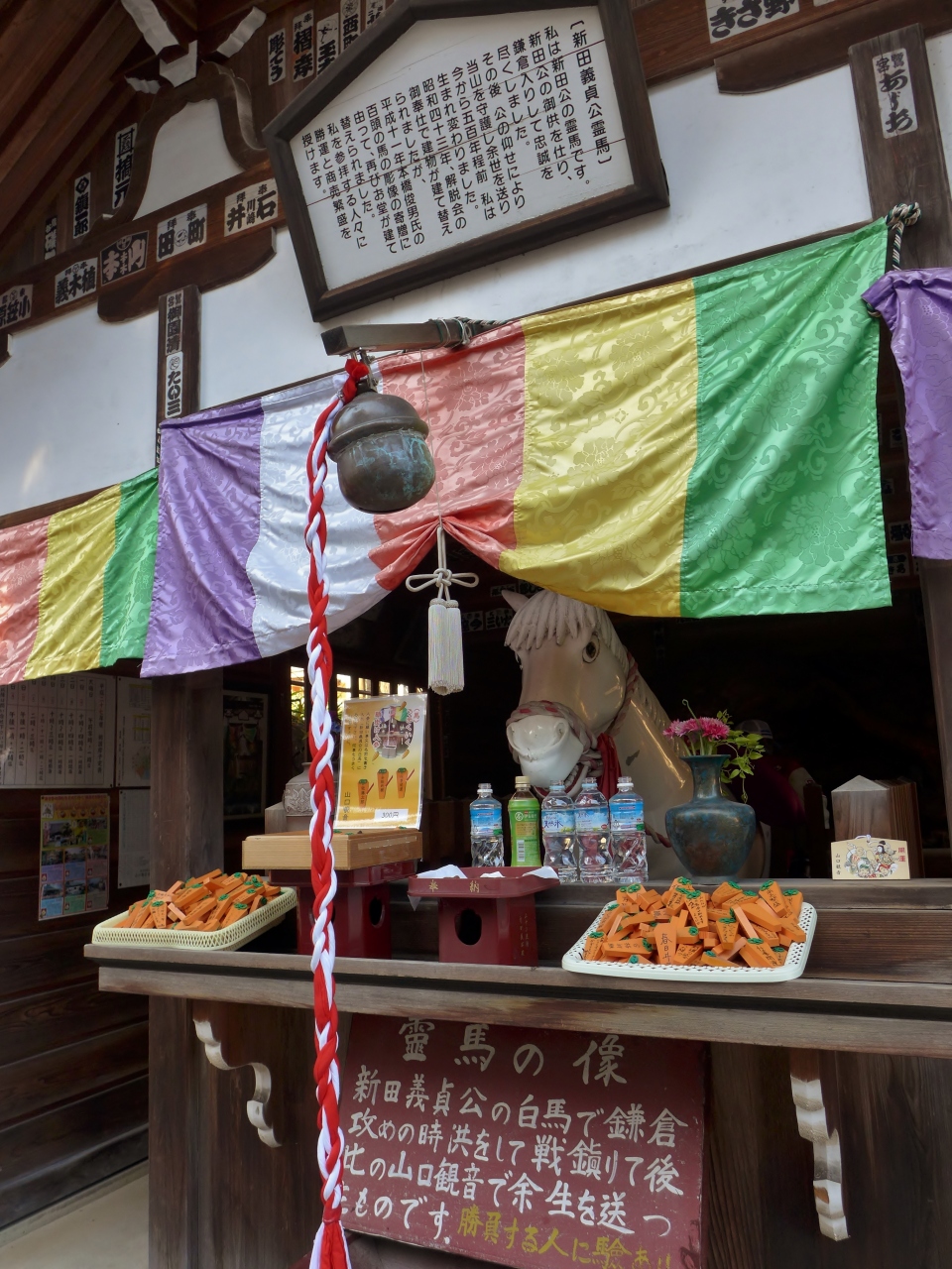 神馬を模した実物大の白馬像があり、これに備える絵馬は人参の形をしているのが珍しいです。本尊に祀られている千手観音が山口観音とも呼ばれているそうです。