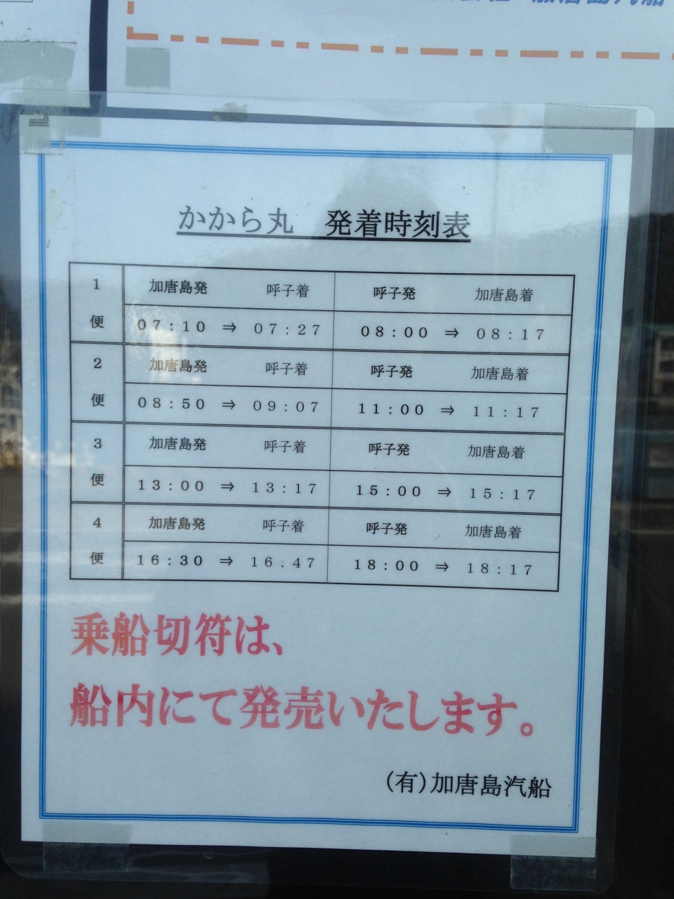 猫好きなので「人間よりも猫の方が多い」と紹介されていた加唐島へ行きたくて、今回はじめて加唐島汽船を利用しました。