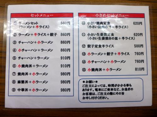 ラーメンの種類は豊富で、セット物や定食もあります。