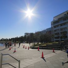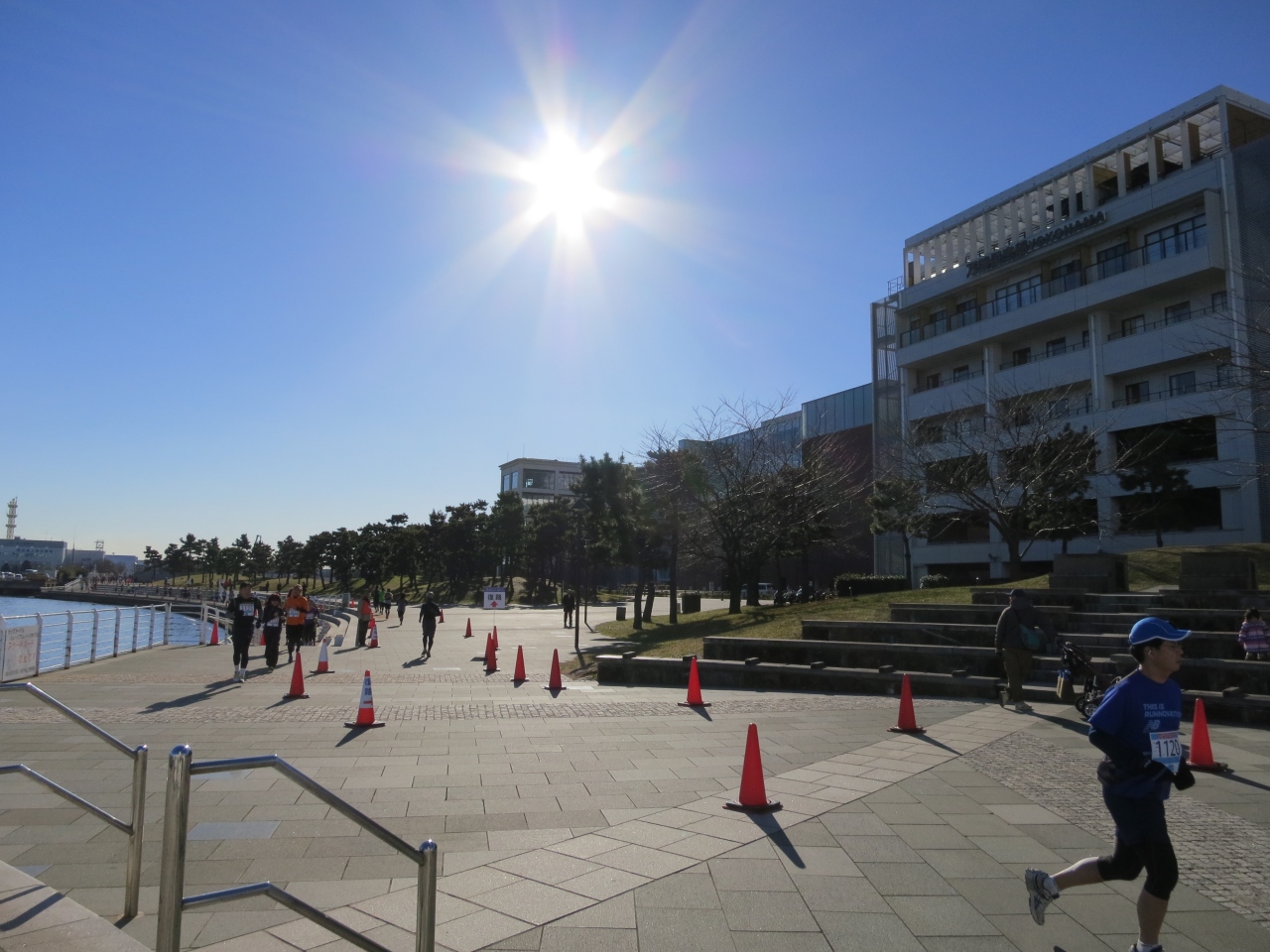 カップヌードルミュージアムの近くにある海辺の公園です。海辺エリアと木々が植えられた芝生エリアからなり、開けていて、眺めがよく、気持ちよい公園です。この日は、FMヨコハママラソンが行われていて、沢山のランナーでにぎわっていました。