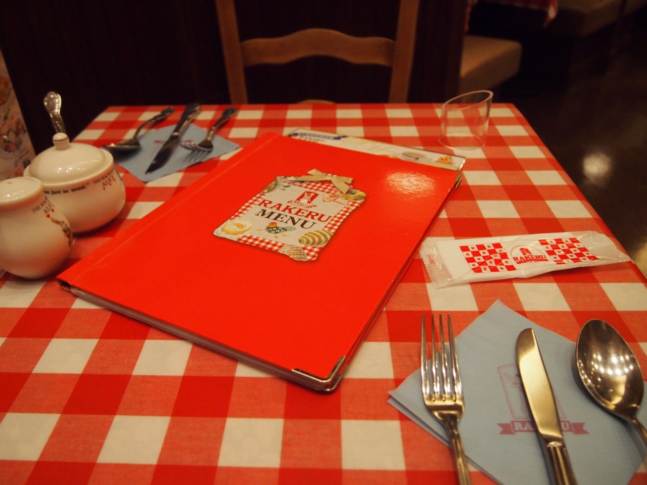 店内も赤のギンガムチェックがカワイイ、内装のお店で、お皿など食器も不思議の国のアリスの柄なので、女子ウケするお店ですね。