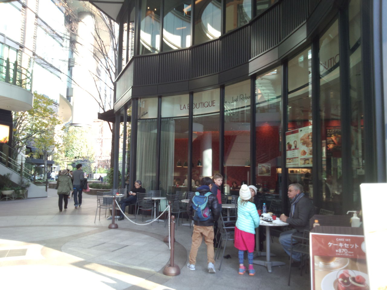 恵比寿にあるお城のようなレストランが、ビジネス街の真ん中にあるオアシスのような中庭を囲むパリ風カフェの一つとして、突然として出ています。丸の内仲通りを有楽町から東京駅へ歩いて行く途中に 美術館の手前にあります。ちょっとお茶でも飲むのに便利です。気軽に会計を先に済ませて、千円前後で軽めのランチや手のこんだパンやケーキが食べられます。