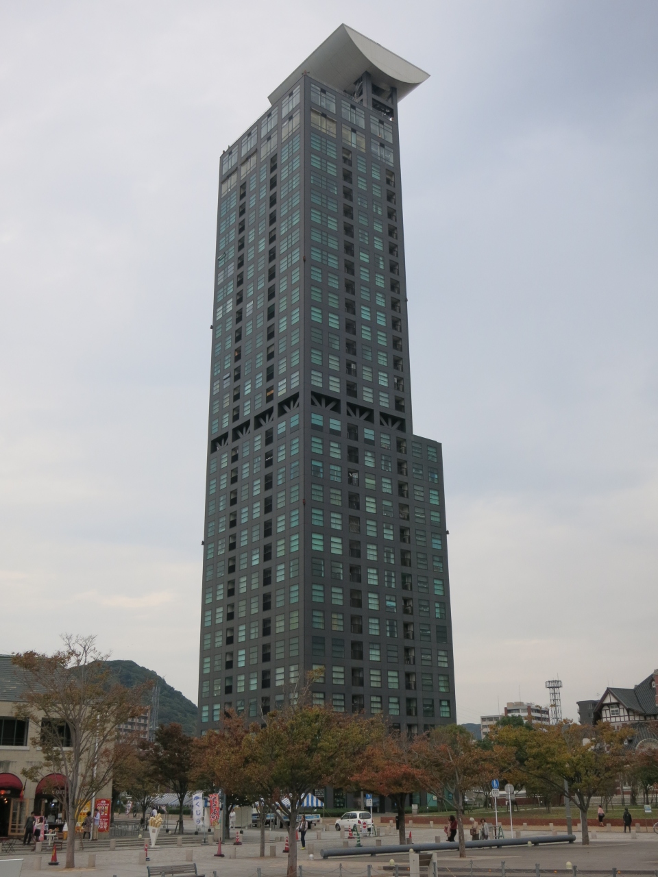 世界的建築家の黒川紀章氏が設計した高層マンション 門司港レトロハイマートの最上階が門司港レトロ展望室になっています。日中に上るか、日没後に上るか迷い、結局夕暮れ後の時間に上りました。この時間だと門司港レトロ地区のイルミネーションも見えますし、関門峡などの遠景も望めるので一番ベストな時間帯だと思います。