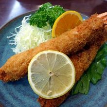 とても大きくプリプリのエビフライや、神奈川やまゆりポークを使ったジューシーなとんかつには、自家製オリジナルソースをたっぷり掛けて頂きます。