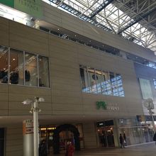 商業施設としては特筆すべきことはありません。極めて普通の駅ビル、テナントもありふれています。ただ、造りはそれなりに凝っていて、真四角のビルとは趣を異にしています。