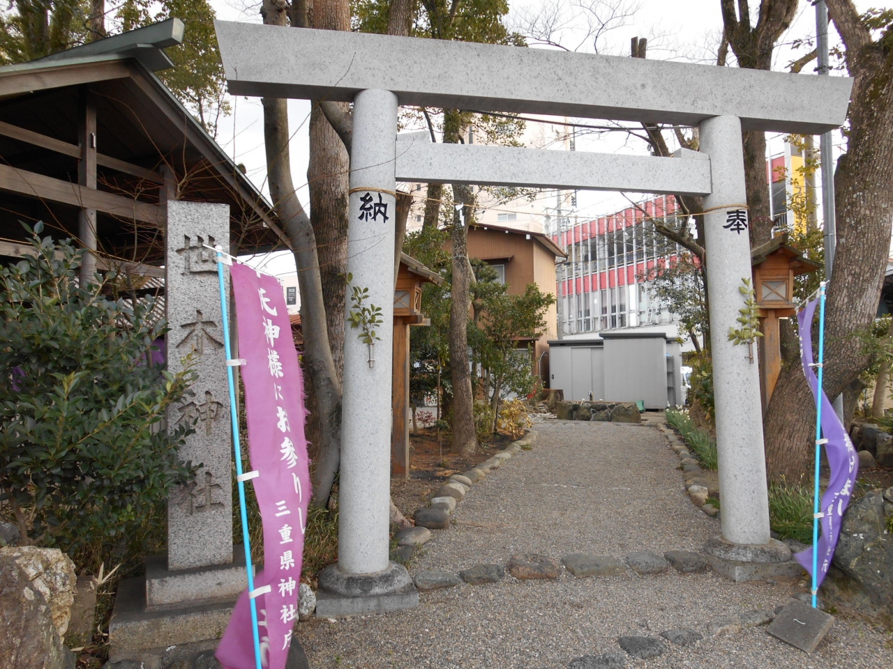 電車の発車待ちついでに寄ってみました。駅前にありながら人は少なく、観光化されていなさそうに思いました。三重県神社庁ウェブサイトを調べたところ、天牟羅雲命・度会春彦神主・菅原道眞公を祀っているとなっていました。