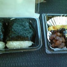 2種類(鮭、しそ味噌)と惣菜のセットで405円