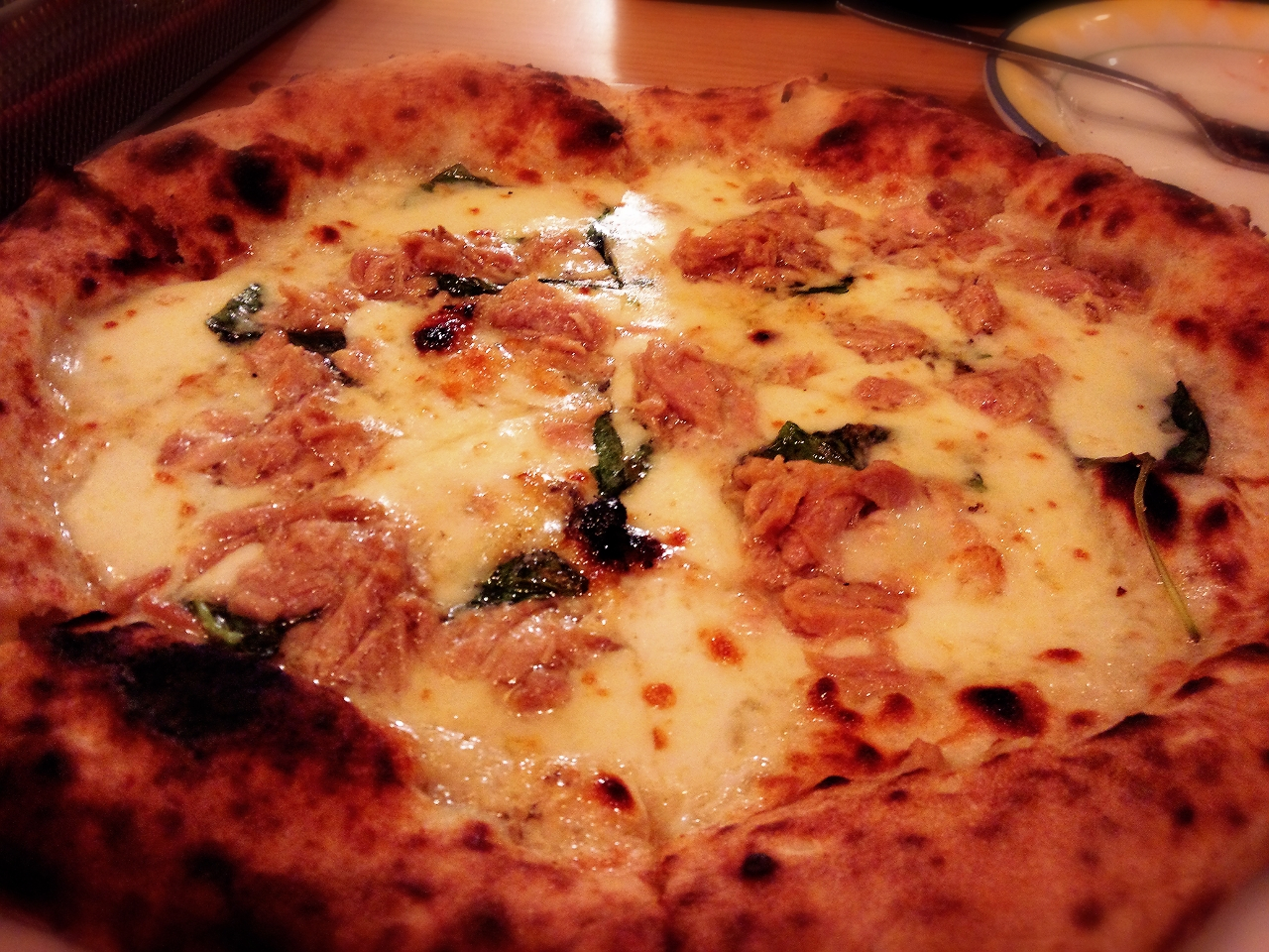 鮪のピッツアって初めて食べた。こんなに合うなんて!麺文化といい、こういうところが、日本とイタリアの共通点だなー。これ、家でピッツアを焼くときの参考になりますねー。相変わらず、生地うまー。