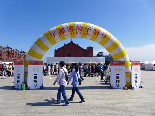 横浜赤レンガ倉庫の広い庭では、頻繁にイベントが開催されていて、私が訪ねたときには宇都宮餃子祭りが開催中でした。