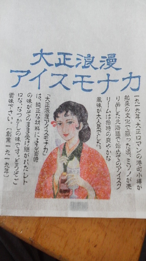 今回は小樽でのイベントに一人で参加したので家族にお土産として買うために寄りました.JR小樽駅からちょっと海側に下りると都通というアーケードがあります.そこに入って200mほどのところにお店があります.入口からちょっと狭い歓談を上がって2階が店舗(喫茶店)になっています.もちろんここで飲み物・軽食もとれるわけですが,今日はお土産のアイス最中を買います.あっさり系とちょっと濃厚系の2種類があります.どちらもおいしいです.札幌からだと車でもJRでも都合1時間ほどかかりますが,ドライアイスを付けてくださいましたので,問題なく持ち帰ることができました.