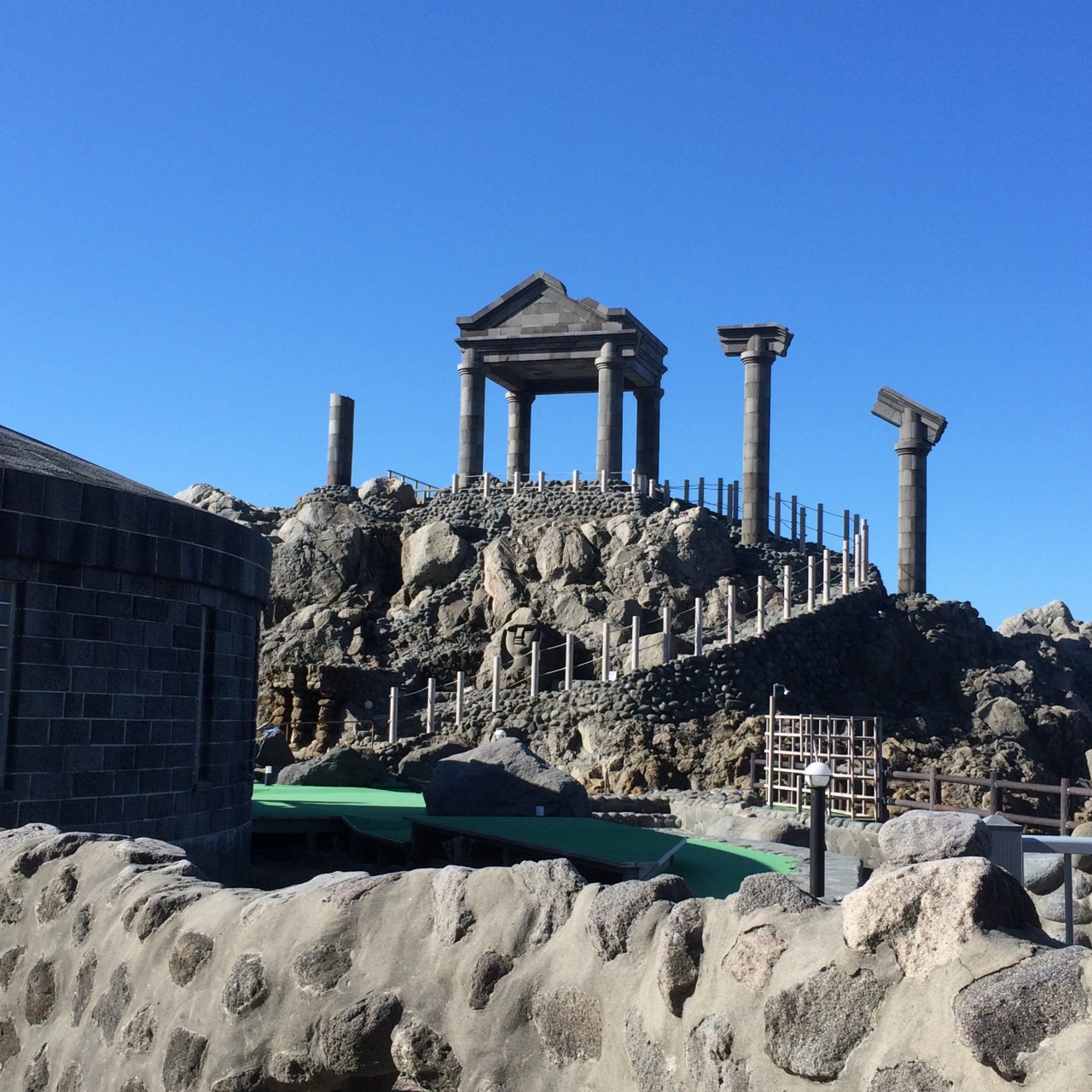 温泉は足湯と5つの湯だまりがありましたが、パルテノン神殿?の