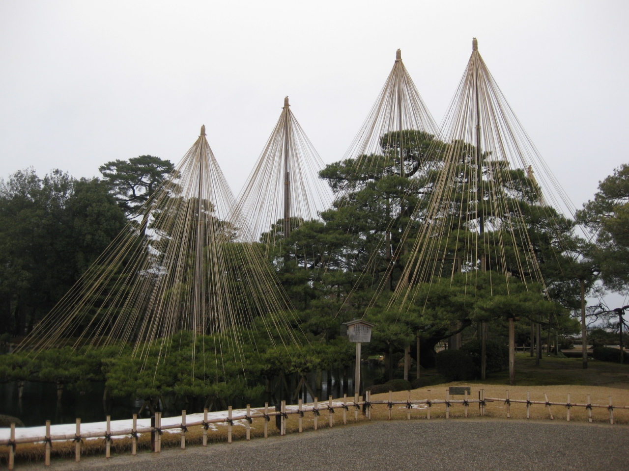 冬の風物詩、雪吊りをしている松(雪は積もってませんでしたが)、日本最古の噴水(自然の原理を使って噴水を出しているところにびっくり)、しっとり落ち着いた苔むした道・・・いいですね~落ち着きます。
