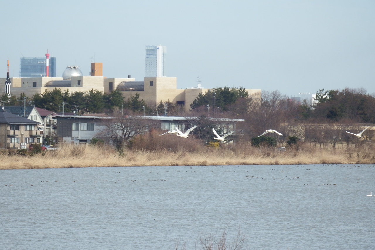 都会の風景と白鳥の飛び立ちは 独特な見晴らしが味わえて最高です。