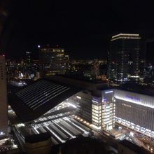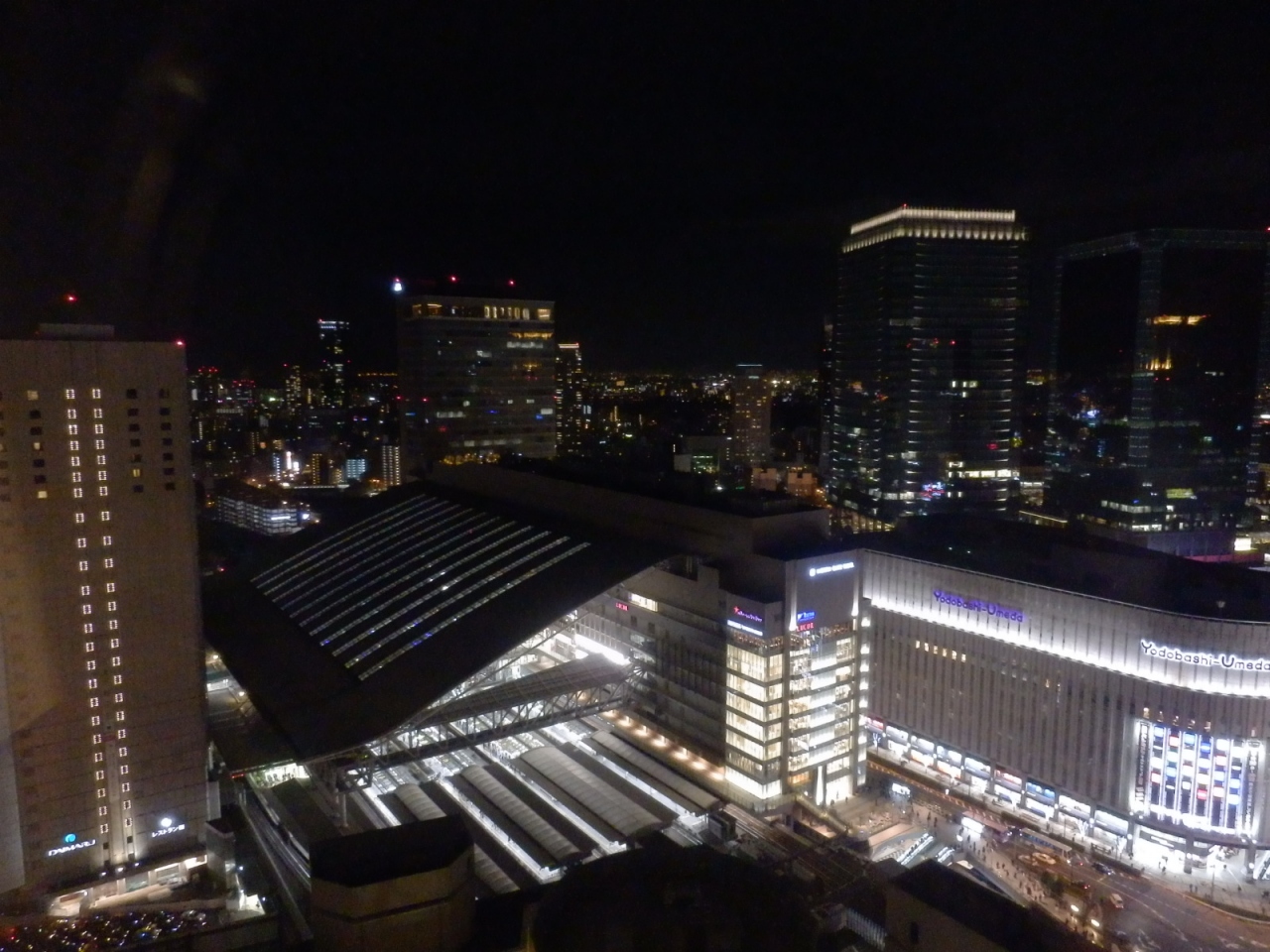 梅田駅のすぐ近く、阪急グランドビルの1,2階と27~32階が阪急32番街で、上層階のレストラン街は空庭ダイニングと名付けられています。特に28階から上のフロアは北側にエスカレーターがあり、その付近はフリースペースとなってます。ベンチ等も置かれていて、レストランに入らずとも無料で夜景を楽しむことが出来て良かったです。