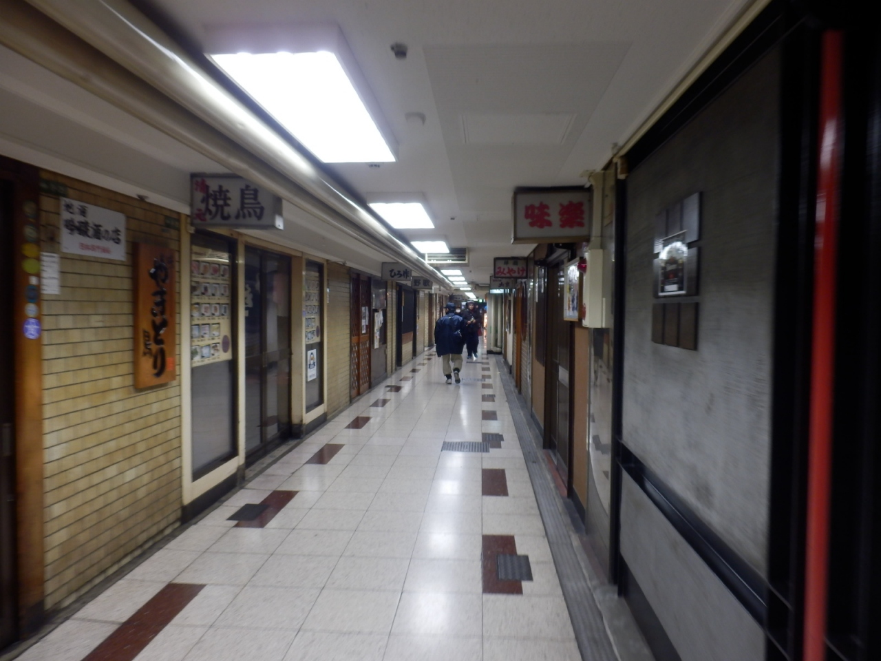 JR大阪駅の東側の高架下には小さな飲食店が並ぶエリアがあります。天井が低くて、地下街のような雰囲気で、迷路のような細い通りが何本かありました。並んでいるのはほとんどがカウンターのみの小さなお店で、昼間から1杯やっている人も見かけました。年季の入った雰囲気で、再開発エリアとは全く違った雰囲気でした。